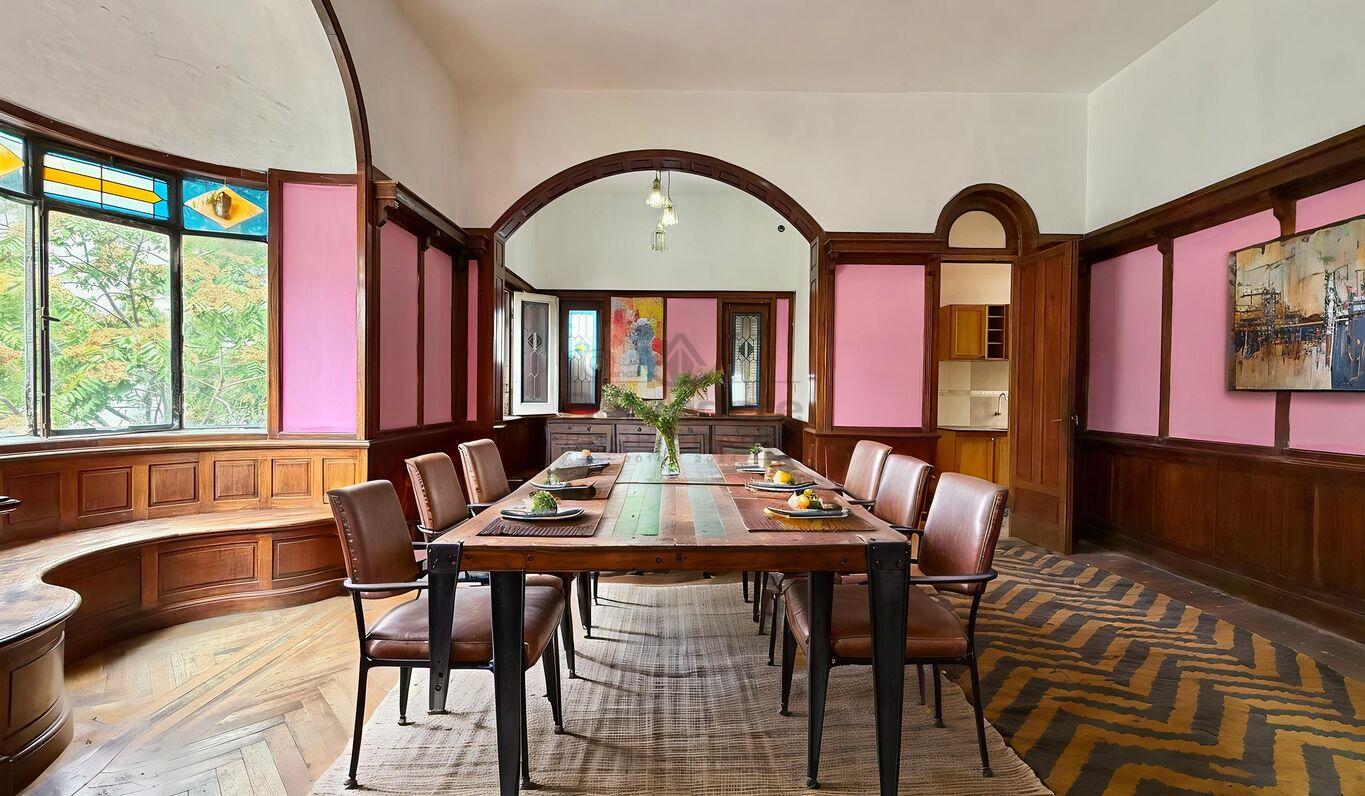 . Living comedor con amplios ventanales con vitrales y madera de epoca ( 5 x 4.5 y 4 x 3.2)